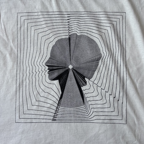Wow. Just wow. Rarely seen super early computer graphic "head" image generated for the 1968 Cybernetic Serendipity exhibition. Screenprinted in fine black on a cool cream coloured tee. All very op art and progressive pop art 1960s. Be VERY quick as very few have been made as usual. These are great Russell Athletic tees, so fit like the Gildans.... See chart below.