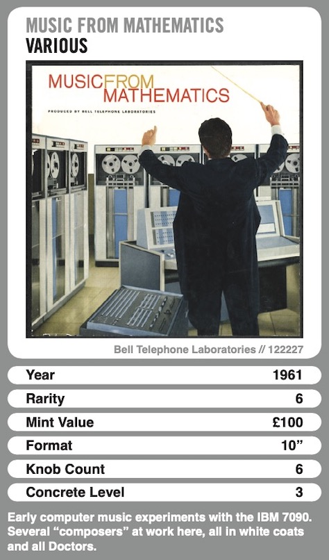 With the help of Julian and Jim from Ghostbox, plus Andrew Divine (DJ, collector and graphics man) we have created the next Pop Trumps pack - it's the Electronic Edition. Not only do these have metallic ink BUT they feature albums, sets, 7" singles, EPs, ten inches record, private presses and more from the 1950s to the 1980s. From concrete to post punk, featuring Radiophonics, Oramics, door slamming, trips into space, oscillations, palpitations and a bit of sex along the way. 55 cards in all, full colour and, as I say, with metallic ink!!! Know your Silver Apples from your Silver Apples Of The Moon, your E.M.S. from you YMO. Statistics include rarity, mint value, knob count and more besides. These really are sexy plugged-in times, limited to 700 packs only. NO REPRINTS. WILL ARRIVE FIRST WEEK OF DECEMBER, WILL BE SHIPPED THEN...