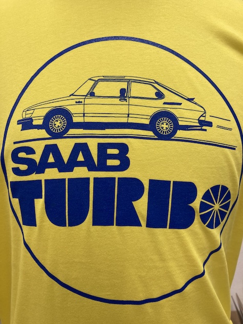 Taken from the exceptionally rare Saab 900 Turbo tee from 1978. In superb Swedish colours. Only available via the Trunk Auto Erotica Kickstarter campaign, these are the few I have left over. Be Quick. Organic cotton tee, screenprinted,. See size chart.