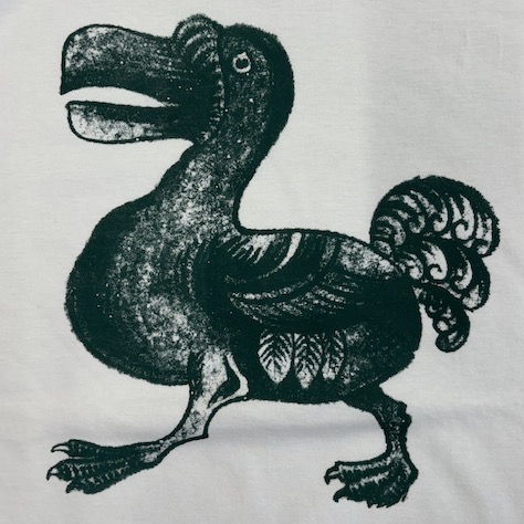 yes, the DODO sold out on the short run of sweatshirts, so it was inventible that the DODO returned. Image is from a William De Morgan tile, circa 1880. Looks banging' on this organic white cotton tee, screen-printed in dark green. Very limited, just one short run. See size chart please as if you get the wrong size the chances are we will not be able to replace it as it will have probably sold out...